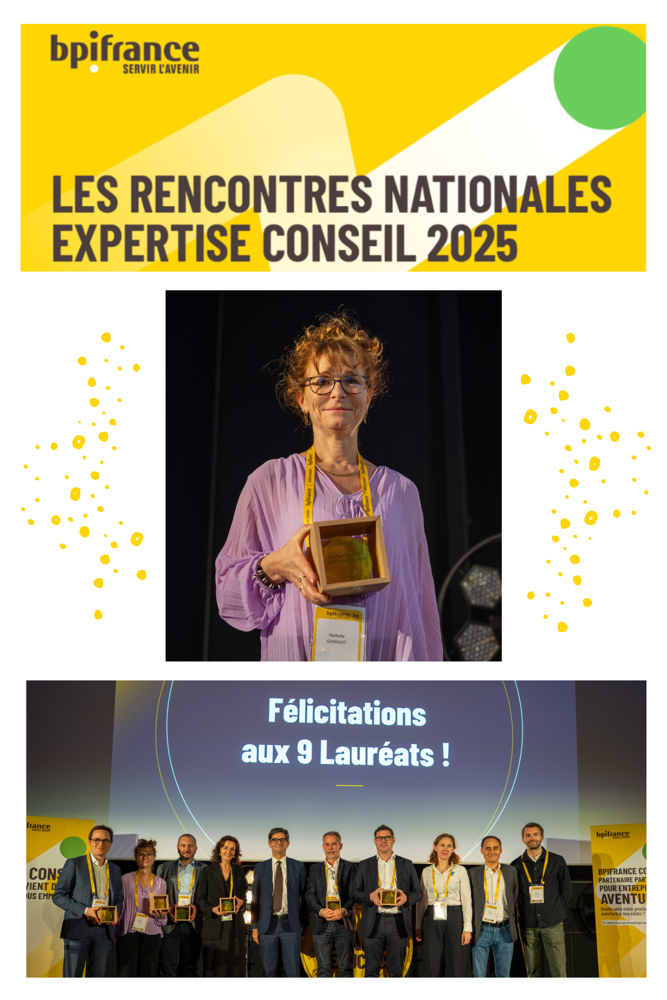 Le Cabinet E.C.A a eu le privilège de recevoir le trophée de la Mission Impactante 2025 lors de la Rencontre Nationale Expertise Conseil BPI France.